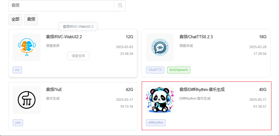 您可以参考平台的快速开始来创建镜像。 在选择镜像时,选择Diffrhythm: